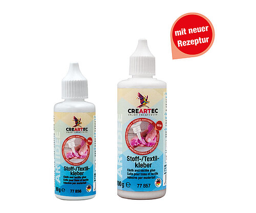 Dünnflüssiger, gut streichbarer Stoff-/Textilkleber zur sicheren, fast unsichtbaren Verklebung von vielen Textilien mit Textilien, Filz, Leder, Kork, Holz oder Styropor.