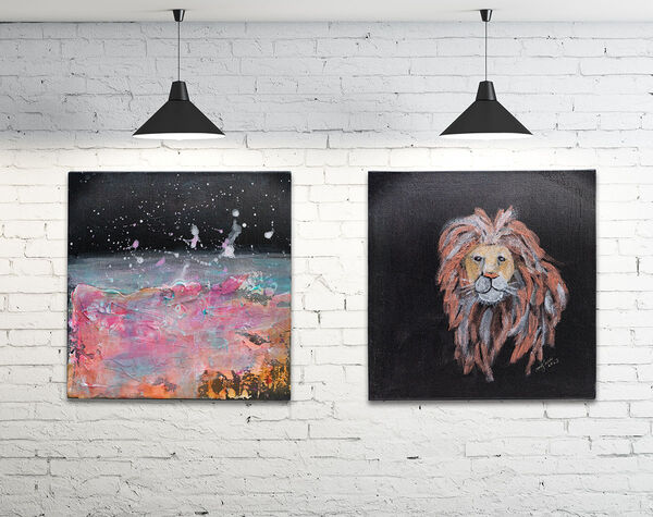 Gerne zeigen wir hier die daraus entstandenen Werke. Grundlage, eine mit schwarzem Acryl grundierte Leinwand.