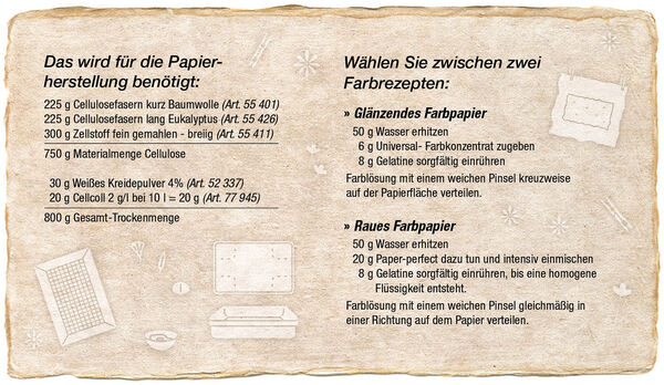60 l Pulpe reichen ungefähr für das Herstellen von 120 bis 160 Blatt Papier im Format 20 x 30 cm.*