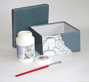 - Bild 3: Kreidecolour (Art. 71 842) oder Basiscolour (Art. 71 841) zügig aufstreichen - der Craqueleffekt erscheint in kürzester Zeit (Gesamtrocknungszeit ca. 1-2 Stunden)