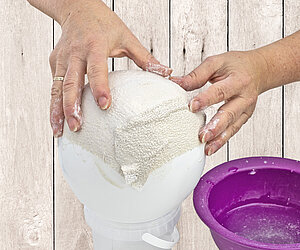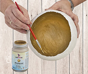 Für zauberhaftes Licht und eine warme Atmosphäre sorgt unsere Gipsleuchte in weiß und gold.