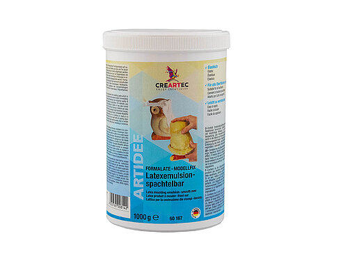 Das cremige, dickflüssige Formalate Modellfix eignet sich sehr gut zum Abformen von reliefartigen Bildern, Dioramen oder Architekturmodellen. Negativformen von noch nicht getrockneten Tonmodellen können mit Formalate Modellfix problemlos hergestellt werden.