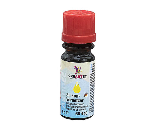 Kein Sillikon-Vernetzer mehr? kein Problem. Natürlich gibt es diesen auch einzeln. Der universell verwendbare Silikonhärter ist mit einem praktischen Tropfverschluss ausgestattet und kann so genau dosiert werden.