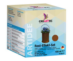 Rost oder Grünspan wird auf Basis einer natürlichen chemischen Reaktion ablaufende Oxidation (Oberflächenveränderung) erzeugt. Das vollzieht sich in unserer Umwelt genauso, in Verbindung mit Regen und Luft (Sauerstoff), nur wesentlich langsamer. Durch die Entwicklung metallhaltiger Dispersionen (Eisen- und Metallgrund) hat CREARTEC die Grundlagen dafür erarbeitet, das durch zusätzliches Auftragen eines Oxidationsmittels auf vorbehandelten Untergründen eine chemische Umwandlung erfolgt. Das Resultat, eine rostige oder mit Grünspan bedeckte Oberfläche. Alles was Sie dafür brauchen finden Sie in diesem Programm...