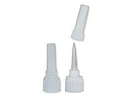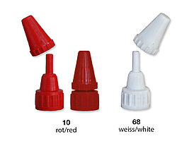 Passend zu den Maldüsen stehen kleine metallische Feinmaldüsen zur Verfügung, die auf die konisch-rund verlaufende Maldüse aufgedreht werden.