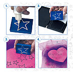 Aber dieses System kann noch mehr, der Stempel eignet sich auch für den Stoffdruck. So wird aus jedem alten oder neuem T-Shirt ein modern gestyltes Kleidungsstück, dass sonst niemand hat.