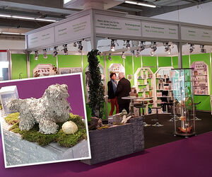Und wie uns viele der zahlreichen Fachbesucher und Kunden an unserem neu gestalteten Messestand anerkennend mitteilten, zählt das CREARTEC Neuheiten Programm 2018 zu den Highlights der Messe, speziell das neue Thema „Tauchen“, mit den Tauchmetallen, dem Tauchrost und dem Tauchbeton wurde vielfach als Top-Innovation genannt. Wie eindrucksvoll und aufsehenerregend damit neue Gestaltungsideen umzusetzen sind, zeigte sich auch daran, dass unser tauchbetonierter Plüschhund vermutlich das am meisten fotografierte Ausstellungsstück auf der Messe war!